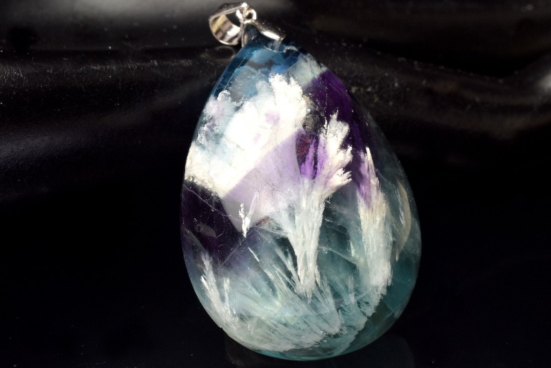 フェザーインフローライト(エンジェルフェザーフローライト・石花蛍石)は、フローライト(蛍石)の中に羽状の白い内包物が見られることからこう呼ばれています。
