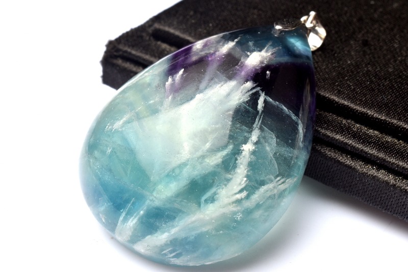 フェザーインフローライト(エンジェルフェザーフローライト・石花蛍石)は、フローライト(蛍石)の中に羽状の白い内包物が見られることからこう呼ばれています。