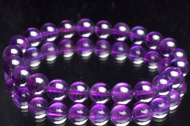 【1点物】濃色◇透明 アメジスト 7.5mm ブレスレット _U5895