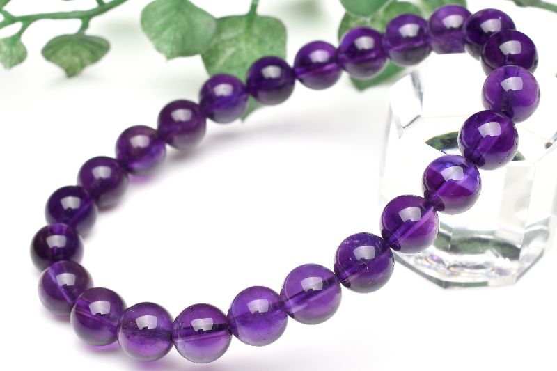 【1点物】濃色◇透明 アメジスト 7.5mm ブレスレット _U5897