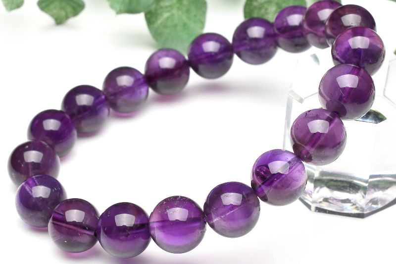 【1点物】濃色◇透明 アメジスト 10mm ブレスレット _U5900