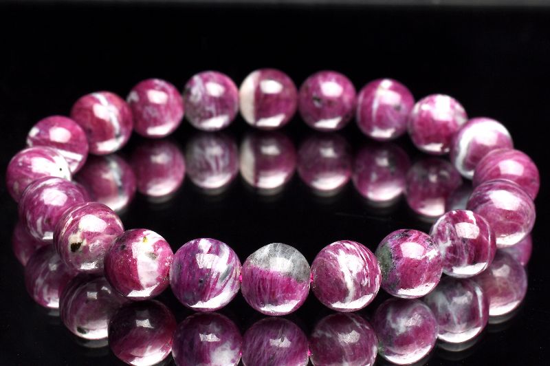 【1点物】鮮やか◇ルビーたっぷり ルビーインゾイサイトシリカ 9.5mm ブレスレット _U5935