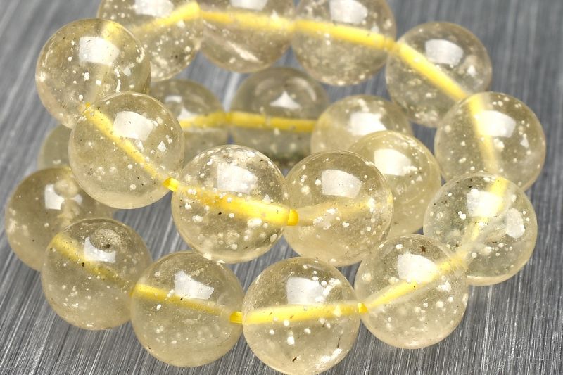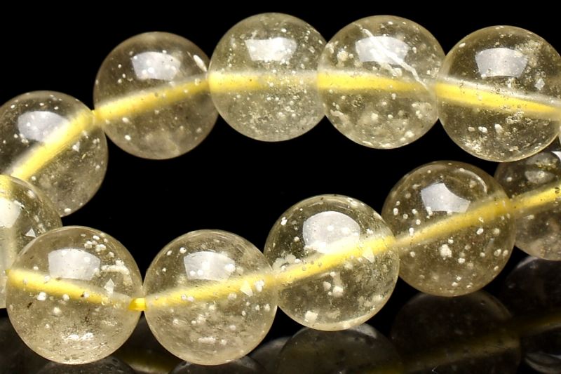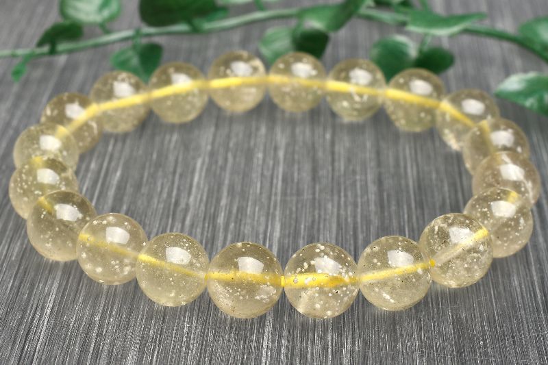 【1点物】AA透明☆クリストバイライト内包 リビアングラス 9.5mm ブレスレット _U5945