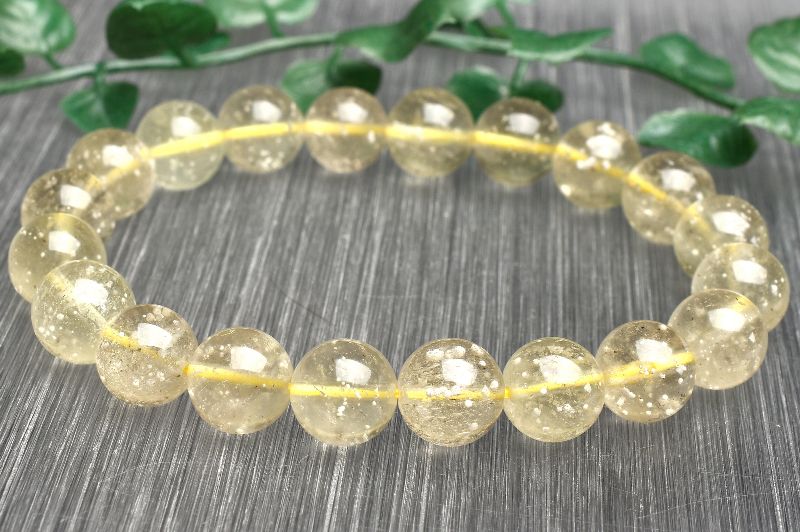 【1点物】AA透明☆クリストバイライト内包 リビアングラス 9.5mm ブレスレット _U5947