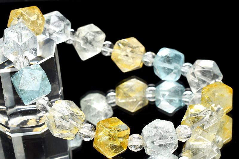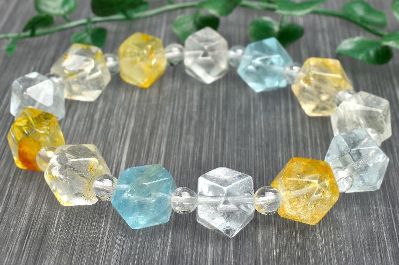 【1点物】希少形状◇ナチュラル トパーズ 10-10.5mm 多面カット ブレスレット _U5960