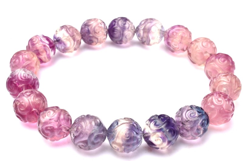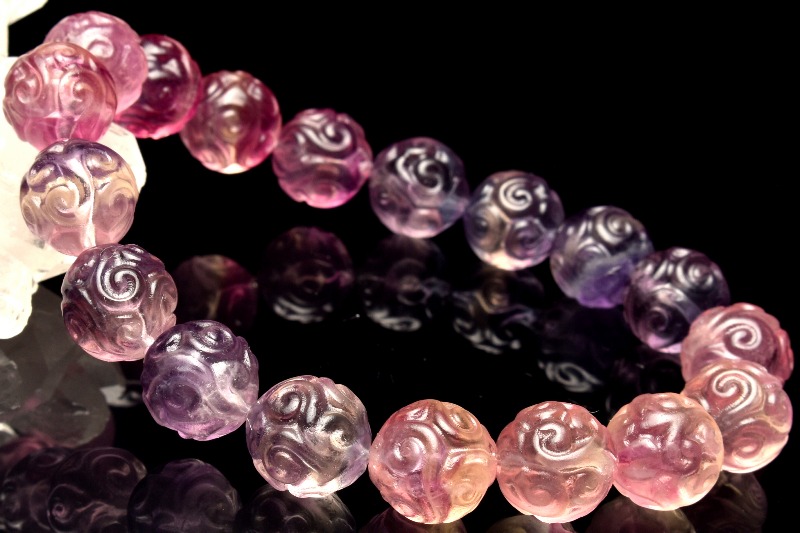 【1点物】繊細彫刻 フローライト 11mm マニ車彫刻 グラデーション ブレスレット _MA911