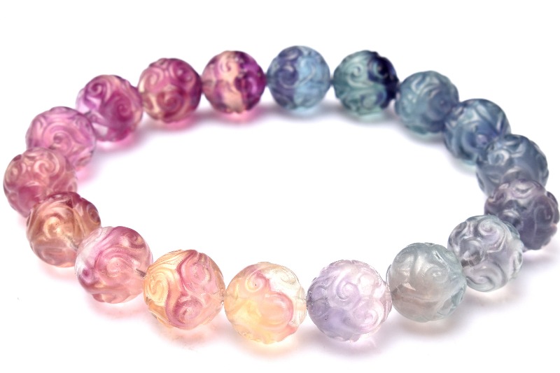 【1点物】繊細彫刻 フローライト 11mm マニ車彫刻 グラデーション ブレスレット _MA914