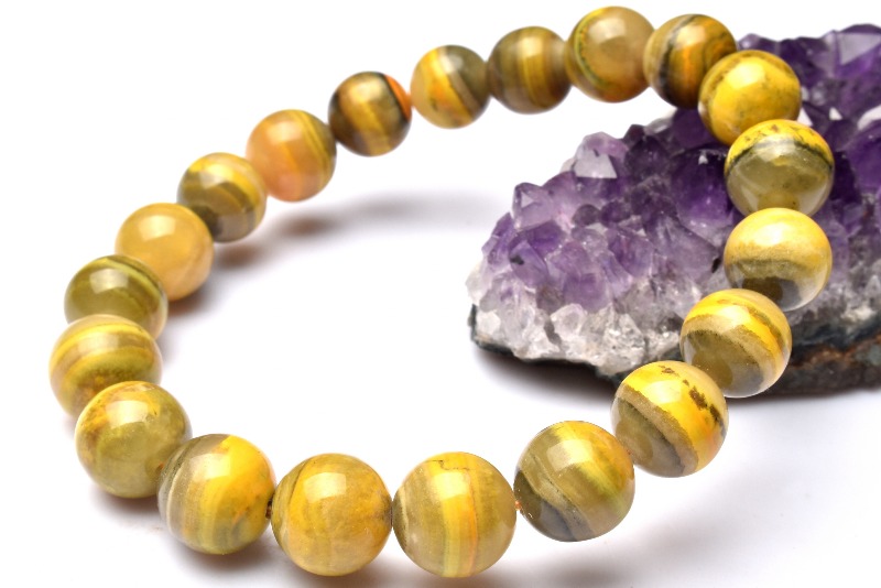 【1点物】高発色 バンブルビージャスパー(マルハナバチジャスパー) 8.5-9.5mm ブレスレット _MA936