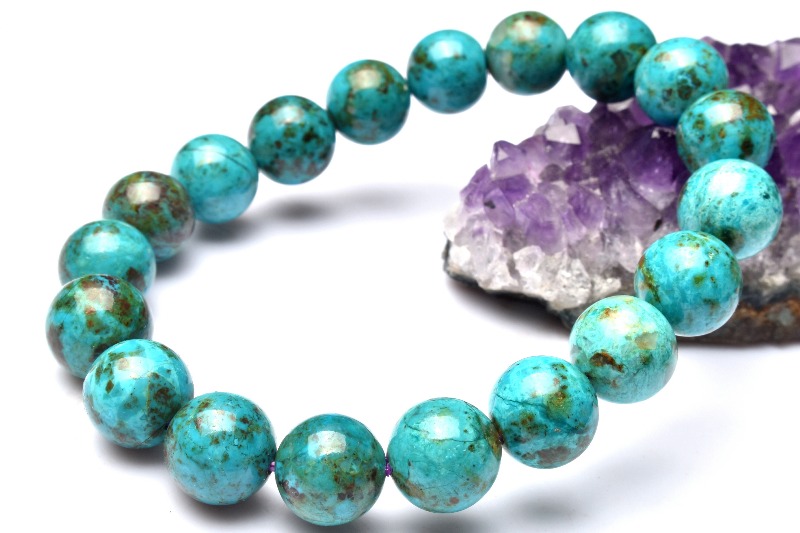 【1点物】高発色◇アースカラー クリソコラ 10mm ブレスレット _MA1019