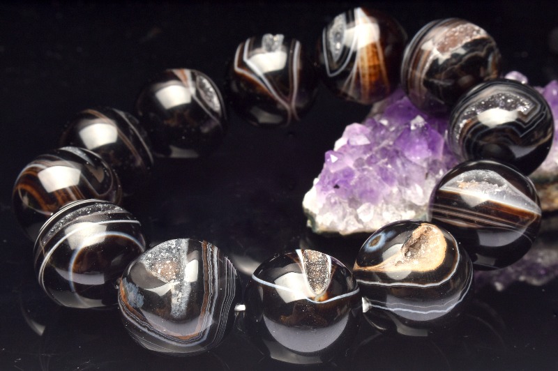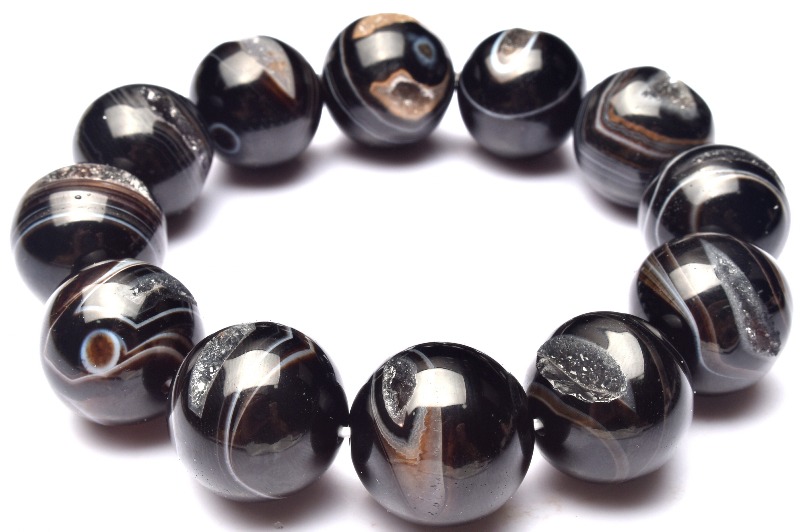 【1点物】大珠◇笑口ジオード ブラックサードオニキス 20mm ブレスレット _MA1050