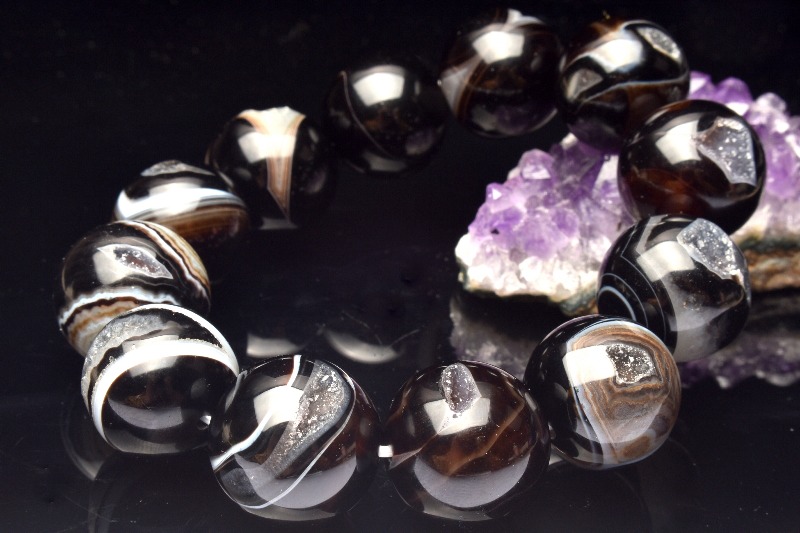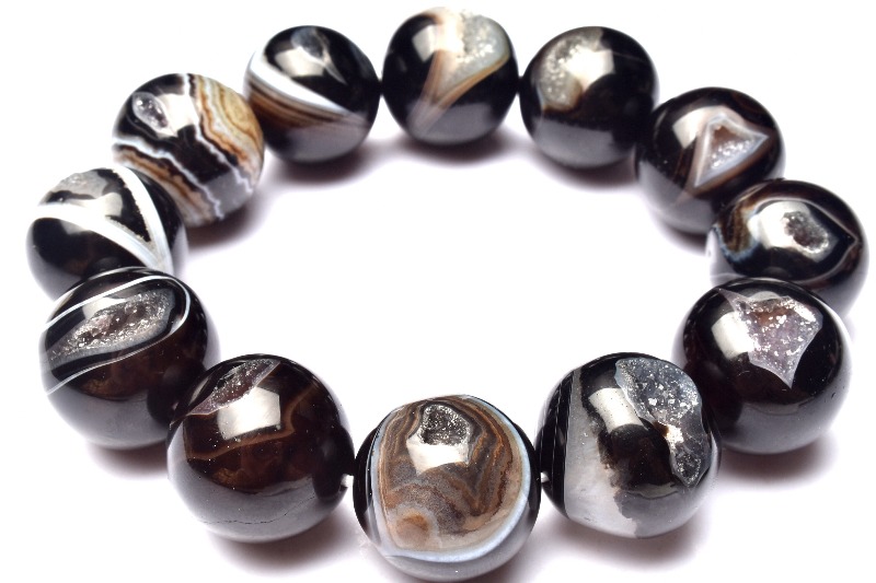 【1点物】大珠◇笑口ジオード ブラックサードオニキス 20mm ブレスレット _MA1053