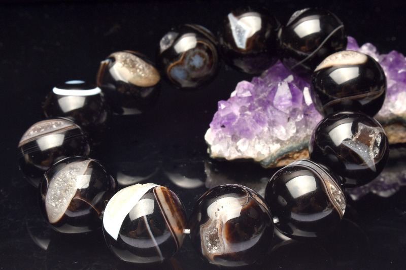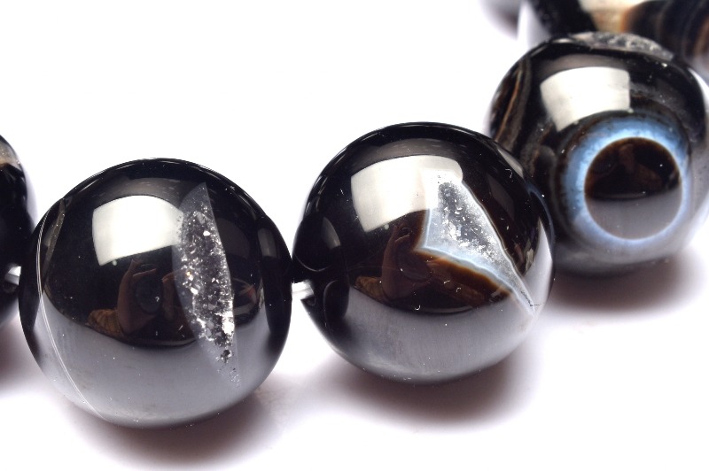 【1点物】大珠◇笑口ジオード ブラックサードオニキス 20mm ブレスレット _MA1054