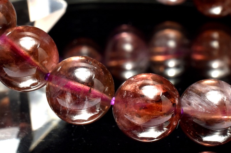 アメジストのパープルと内包物のレッドカラーが混じり合って美しい色合いです。