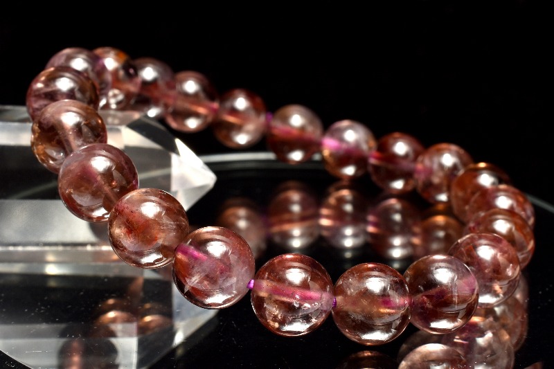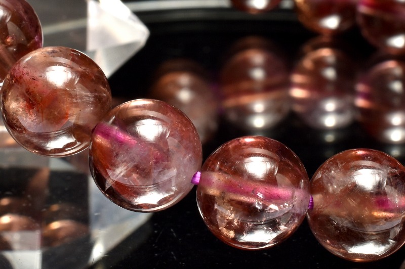 アメジストのパープルと内包物のレッドカラーが混じり合って美しい色合いです。