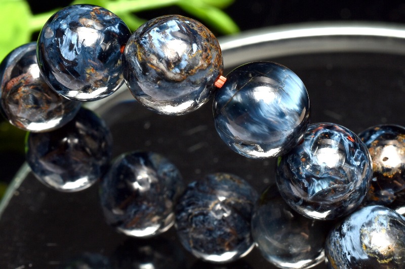 一般的にはタイガーアイ系の茶褐色が多いですが、ブルータイガーの青系もあり、茶と青の混じったものもあります。
