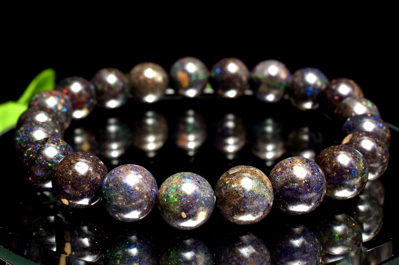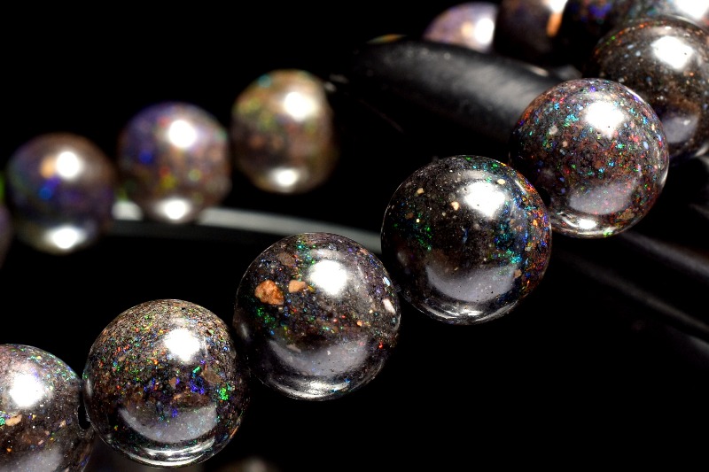 【1点物】遊色効果◇宇宙のよう ブラックマトリックスオパール 9mm ブレスレット _MA1242