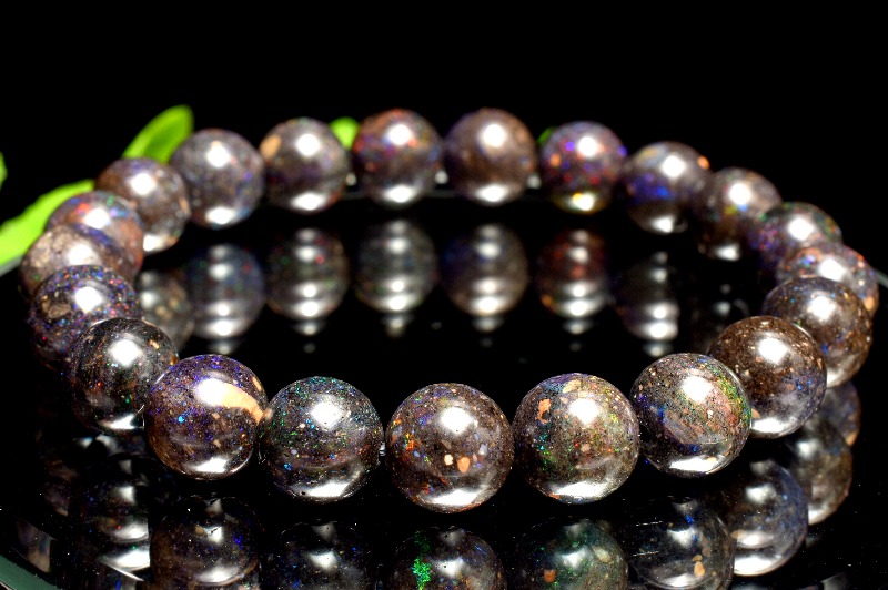 【1点物】遊色効果◇宇宙のよう ブラックマトリックスオパール 9mm ブレスレット _MA1243