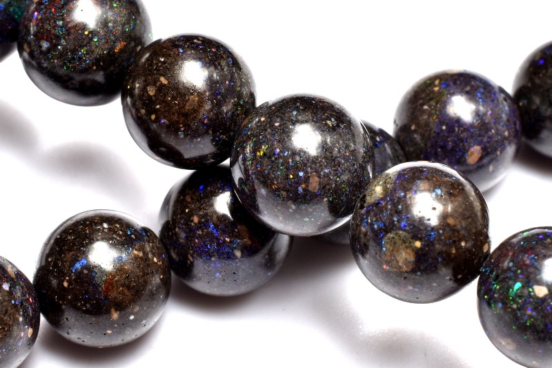 肉眼でも遊色は見られますが、強い光に当てると、まるで宇宙を見ているかのようにキラキラと煌めく美しいタイプ。