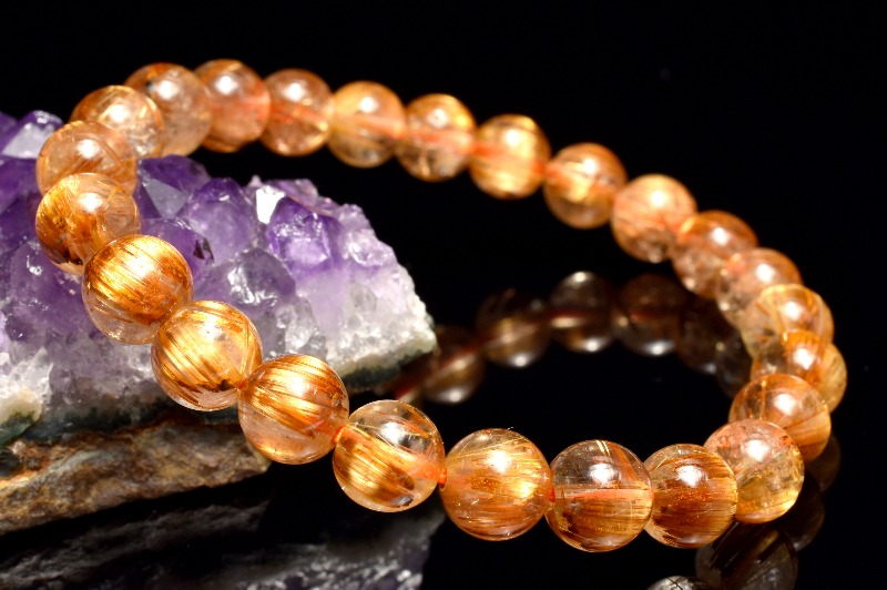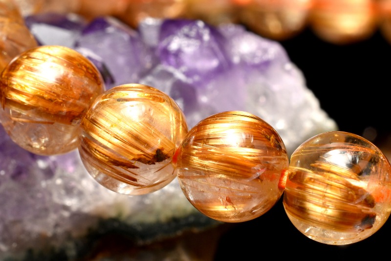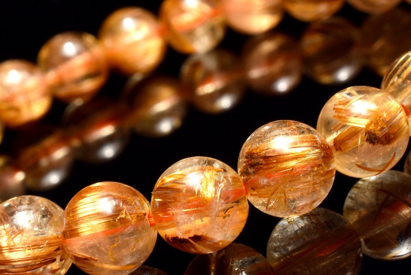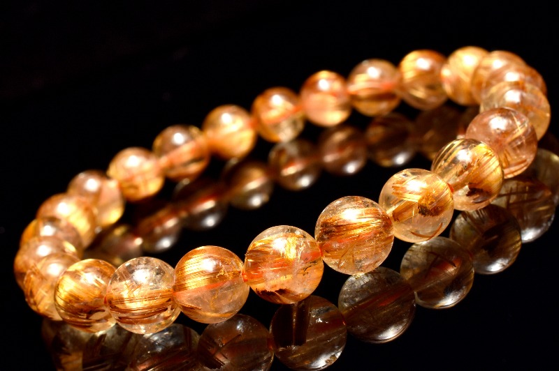 材質ゴールドタイチンルチルクォーツ 7.5mm 産地:ブラジル