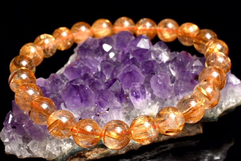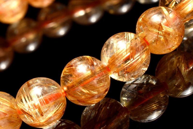 材質ゴールドタイチンルチルクォーツ 7.5mm 産地:ブラジル