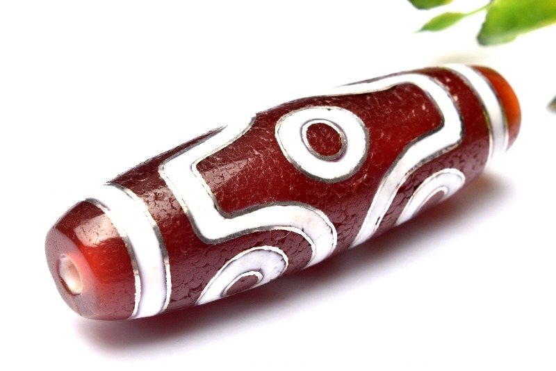 銀線天珠 赤天珠 48x14mm 六眼天珠 ビーズ 1個売り _PRG2254-2