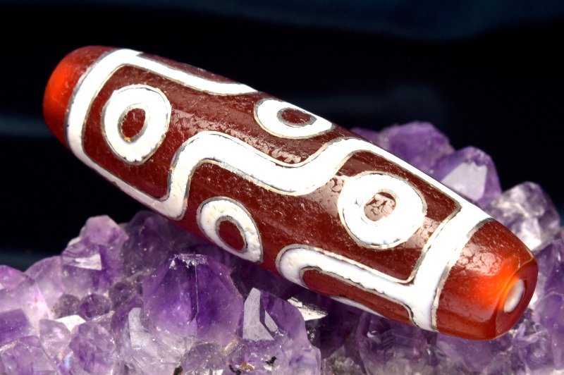 天珠は瑪瑙に特殊な加工を施して模様を描いたものです。