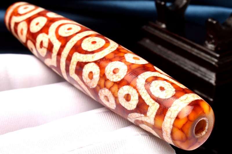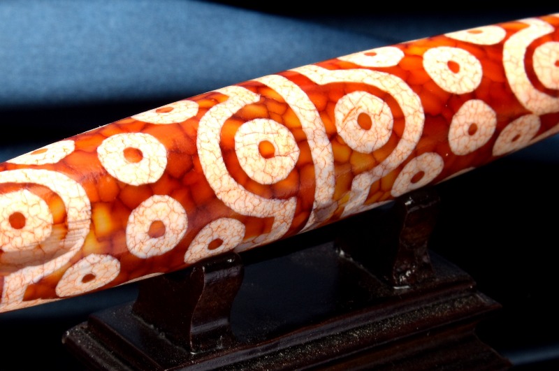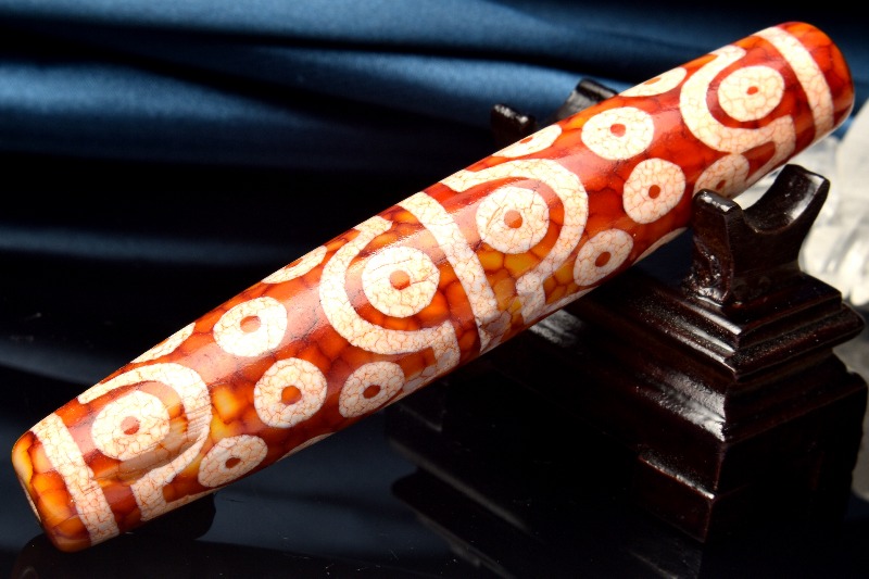 【1点物】龍鱗鳳血三十六眼天珠 102x19mm 木製台座付き 天珠 _CG6203【宅急便のみ】