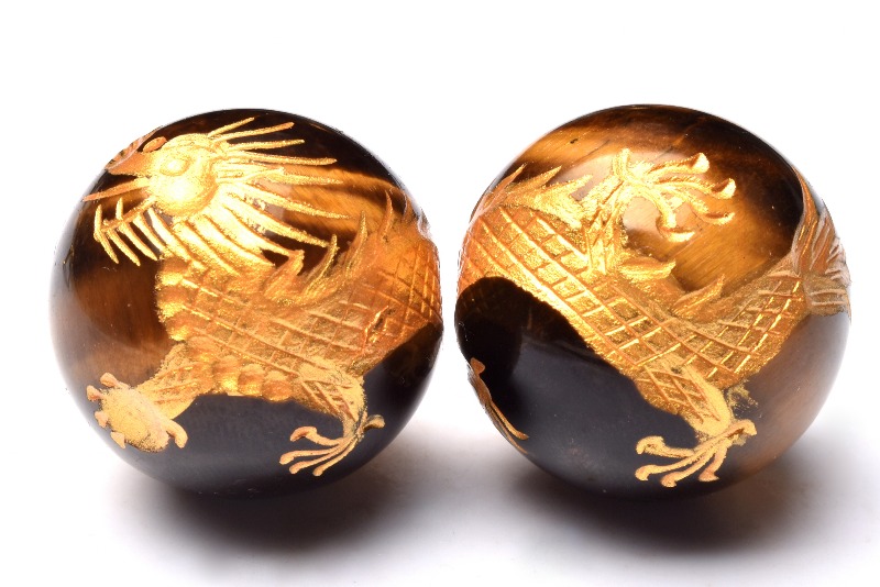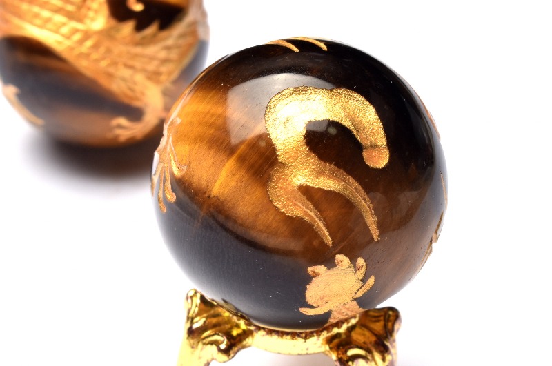 五爪皇帝龍 イエロータイガーアイ 30mm 金彫青龍 丸玉(台座付き) スフィア 1個売り _CRG170-1【宅急便のみ】