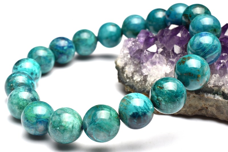 【1点物】高発色◇ペルー産 クリソコラ 10mm ブレスレット _MA1465