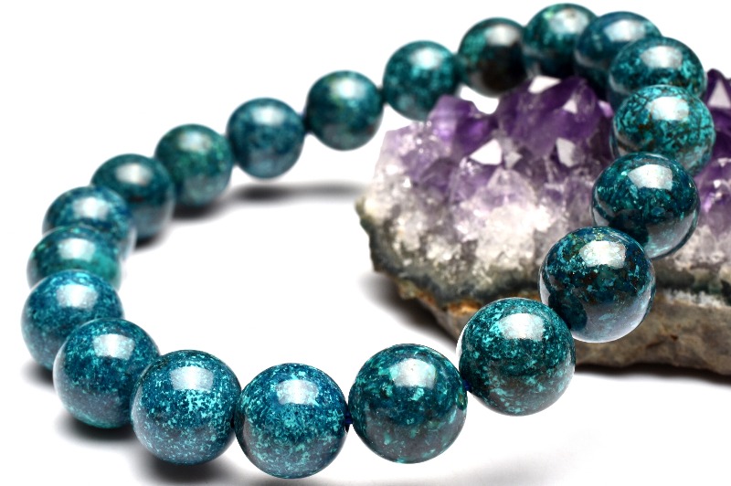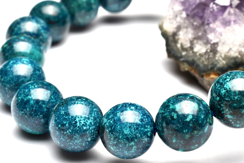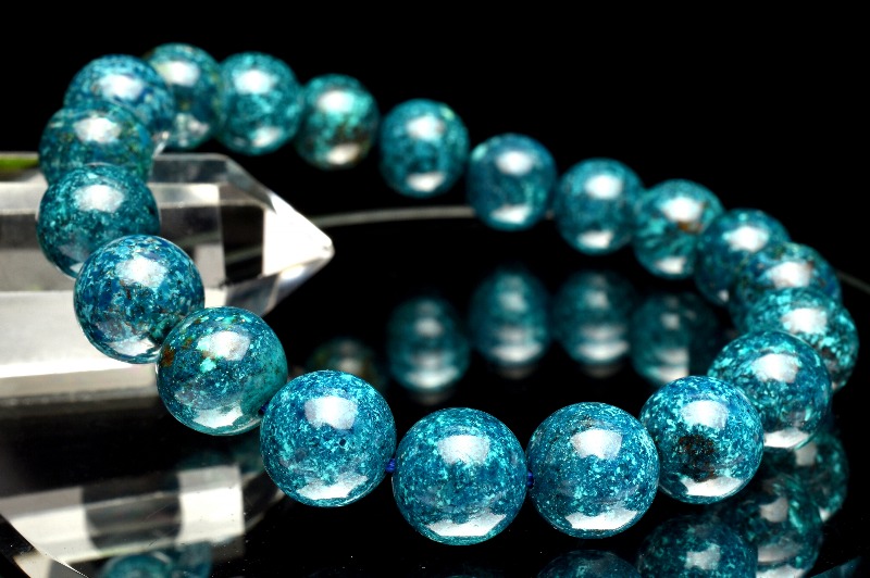 【1点物】高発色◇ペルー産 クリソコラ 9.5mm ブレスレット _MA1472