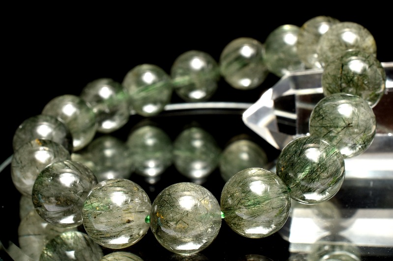 グリーンルチルは、水晶に緑色のトルマリンやアクチノライトが内包されたものです。グリーンルチルという名前は流通名で、正確にはルチルではありません。