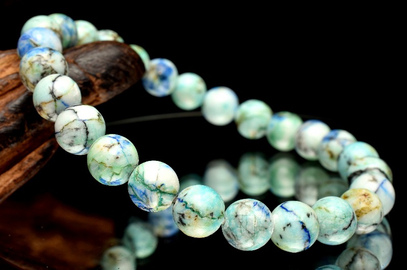 【1点物】幻想的な模様 アズライトインバライト 7mm ブレスレット _MA1530