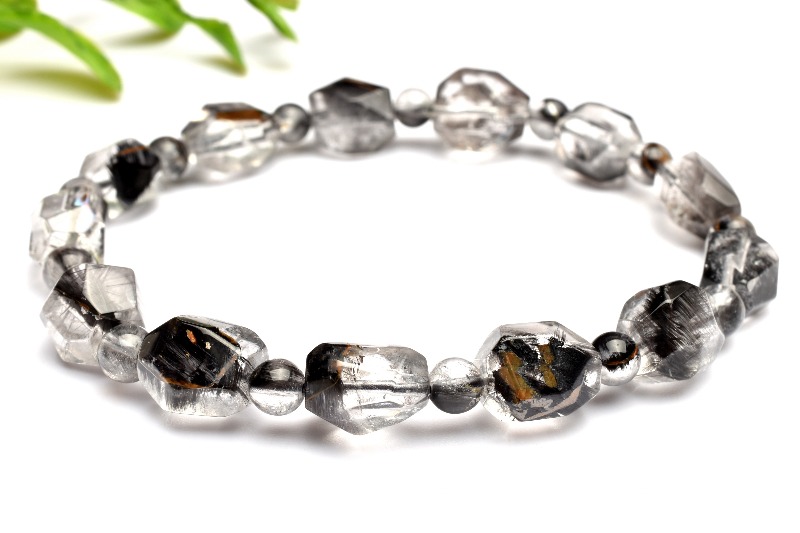 【1点物】AAA希少形状☆ブルッカイト入り プラチナタイチンルチルクォーツ 10-11x8-10(丸玉5)mm ブレスレット _MA1796