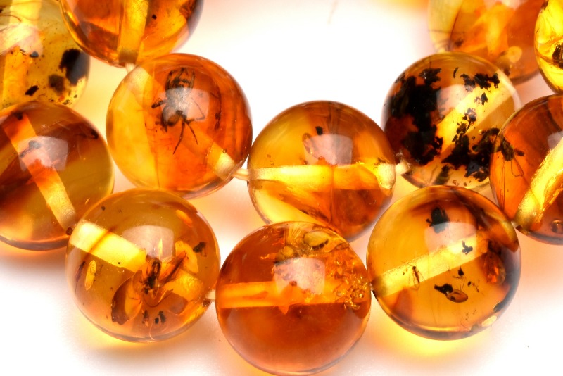 材質虫入り琥珀アンバー 9.5mm 産地:ロシア・バルト海沿岸