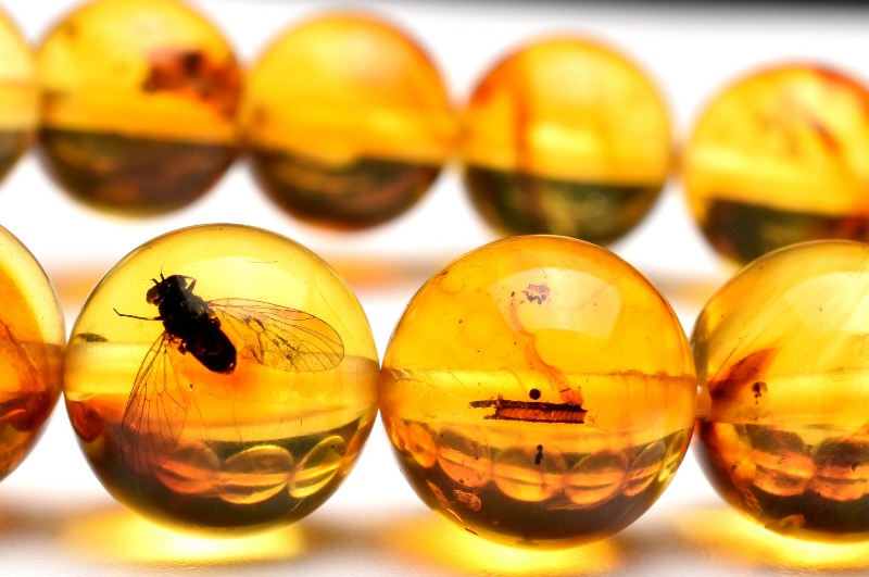 サイズ・種類も様々な昆虫が閉じ込められた天然琥珀のブレスレットです。