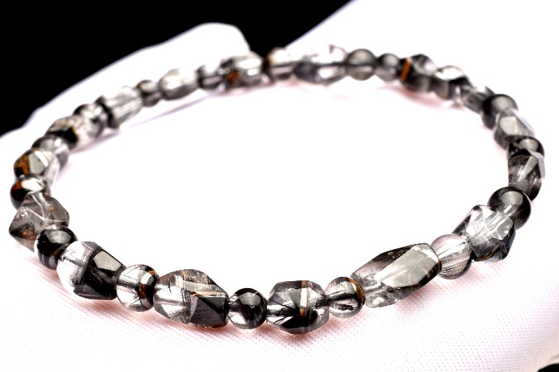 【1点物】AAAA☆曇りない白銀の輝き プラチナタイチンルチルクォーツ 5-9x5-6(丸玉4.5)mm 原石ラフカット ブレスレット _MA1805