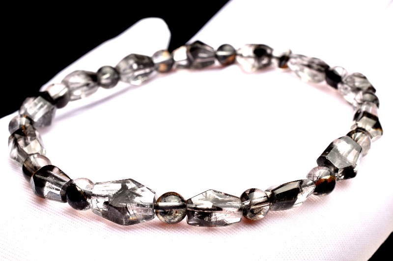 【1点物】AAAA☆曇りない白銀の輝き プラチナタイチンルチルクォーツ 7-10x6-7(丸玉5)mm 原石ラフカット ブレスレット _MA1807
