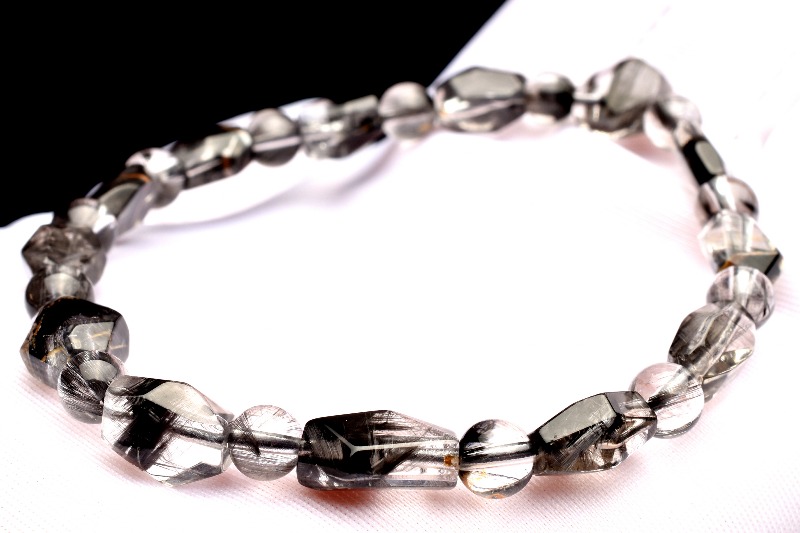 【1点物】AAAA☆曇りない白銀の輝き プラチナタイチンルチルクォーツ 9-12x6-8(丸玉5.5)mm 原石ラフカット ブレスレット _MA1810