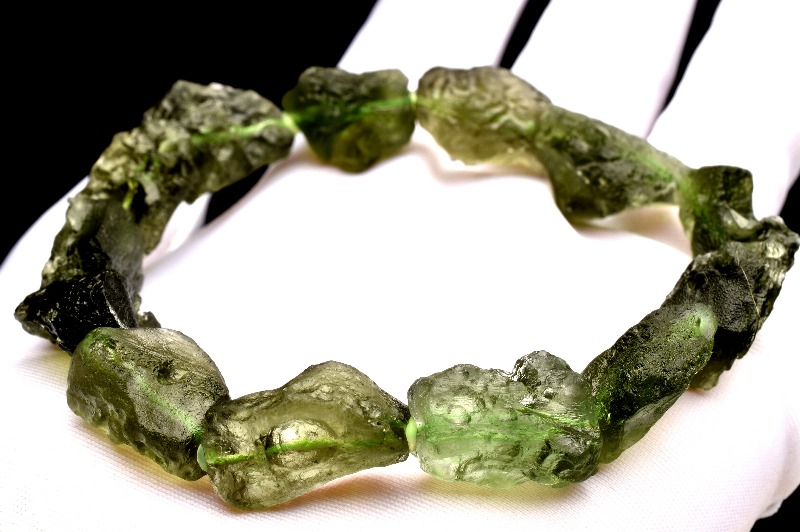 特徴・意味モルダバイトの質感を生かした、原石感たっぷりのワイルドなブレスレットです。