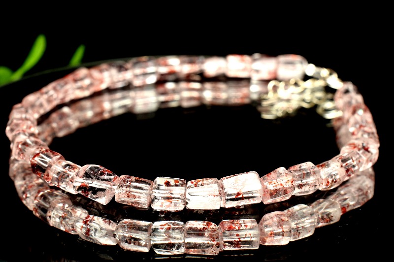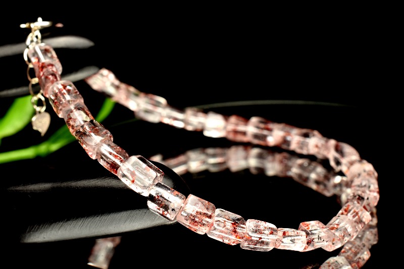 【1点物】Silver925◇高品質 ストロベリークォーツ(レッドレピドクロサイトインクォーツ) 4-5x4-5mm アジャスター付き ブレスレット _MA1817