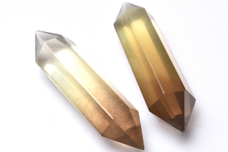 【1点物】希少◇魔晶宙斯 ゼウスクォーツ(スモーキークォーツ) 44x11mm 2個セット 両剣ポイント 原石 _PC2745