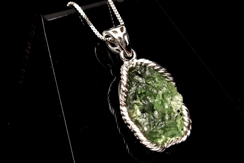 【1点物】希少AA+☆Silver925 モルダバイト 15x10mm 原石 ペンダントトップ _PC2786