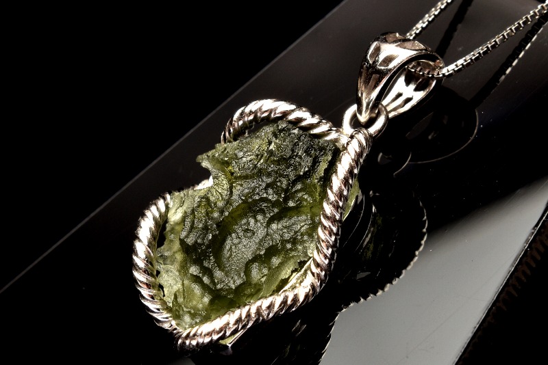 【1点物】希少AA+☆Silver925 モルダバイト 17x11mm 原石 ペンダントトップ _PC2792