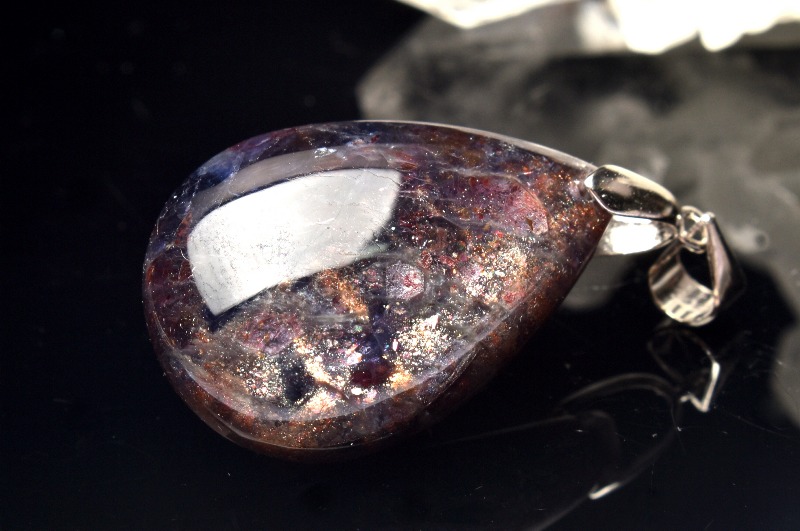 【1点物】ilver925◇ブラッドショット内包 アイオライトサンストーン 26x18mm ドロップ ペンダントトップ _PC2805