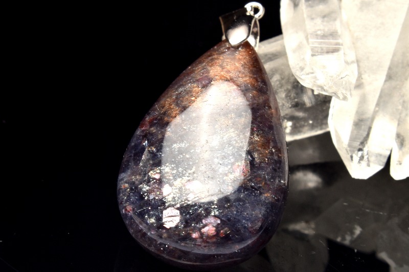 【1点物】ilver925◇ブラッドショット内包 アイオライトサンストーン 29x19mm ドロップ ペンダントトップ _PC2806