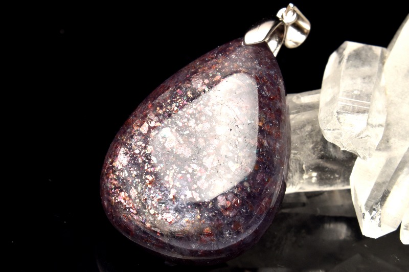 【1点物】ilver925◇ブラッドショット内包 アイオライトサンストーン 30x23mm ドロップ ペンダントトップ _PC2810