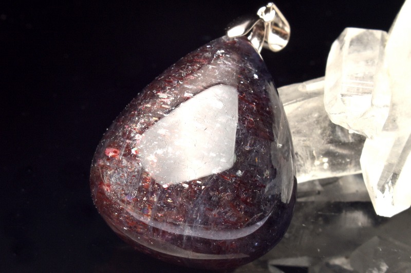 【1点物】ilver925◇ブラッドショット内包 アイオライトサンストーン 30x25mm ドロップ ペンダントトップ _PC2811