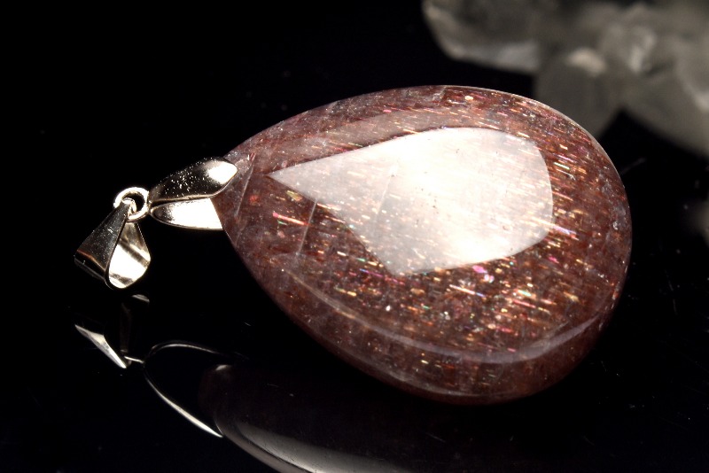 【1点物】ilver925◇ブラッドショット内包 アイオライトサンストーン 28x21mm ドロップ ペンダントトップ _PC2812