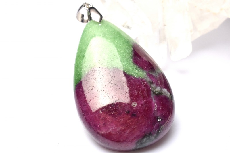 ルビーの赤、ゾイサイトの緑、シリカの白が合わさった個性的なストーンです。