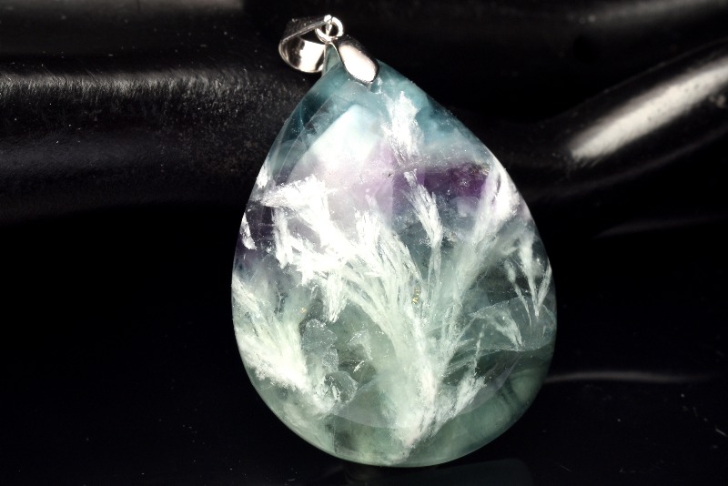 フェザーインフローライト(エンジェルフェザーフローライト・石花蛍石)は、フローライト(蛍石)の中に羽状の白い内包物が見られることからこう呼ばれています。